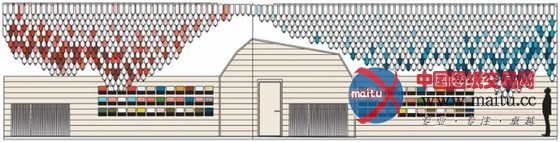 设计师的灵感来自一种叫byweeping柳树,它们巨大年夜足以区隔私密空间。因而设计师遴选了20款不合色采的Kvadrat纺织品,制成1500条彩带,在空中错路有致的吊挂起来,摹拟春季的垂柳;展厅内部用原生态的木板建造成板屋的屋顶和野餐的木凳来揭示布样,变幻成一个超实际布满轻松意味的魔法丛林,美好至极。