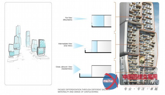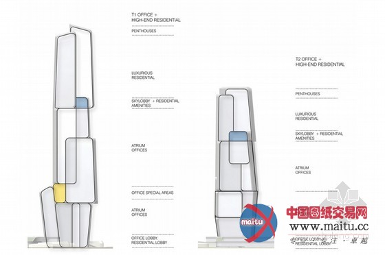 UNS工作室将这一建筑背后的表达定义为:托盘上的珍贵建筑。设计中,持续的景不雅据有了全部地址,一个绿色平台式的托盘托起全部塔楼。双塔,被建筑师们形容为:“空中邻居”,并且双塔堆叠的部门,构成了一个眼睛的外形,这一地区被成为是天空花圃的公共歇息区或是办公室的社交会议地。并且这一地区将可以或许闪现温州市中间和和河边最好的风景。