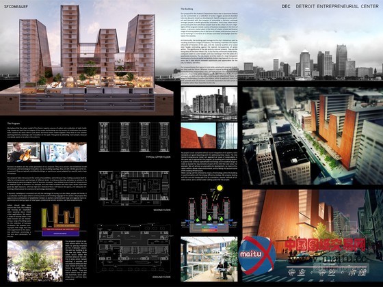 整座建筑由美国建筑公司studioefra设计完成,包含Efrain velez, Juan nunez, Marko Kanceljak; Kalamazoo, Michigan等驰名设计师。因为外部材料钢概况有生锈的迹象,所以建筑的天际线轮廓很像一个工厂。动态的综合开辟旨在激起新的城市精力,既创业精力,这将有助于带悦耳们回到城市的核心肠区。专门为企业家和创业企业建造的举措措施是一系列的企业孵化器。因为全部团队的愿景是城市成长的将来模式。这个城市需要的是步履,而非良多静态建筑的调集。设计将经由过程城市街区中间的余暇区域来完成内部职业多样化,从而使整体视图均衡。艺术和手工工作室将会设计成开放式的,如许室内便可以接管很好的天然光。高科技范畴包含尝试室空间,一个恰当的收集根本举措措施尝试室和科学手艺成长工作室。住房类型有微公寓和行政公寓,如许的设计使得一天内的所有时候内,整座大年夜楼都是活跃的。“底特律创业中间”是一个集地区可延续成长,能源节俭,手艺进步前辈和设计立异为一体的高品质建筑。