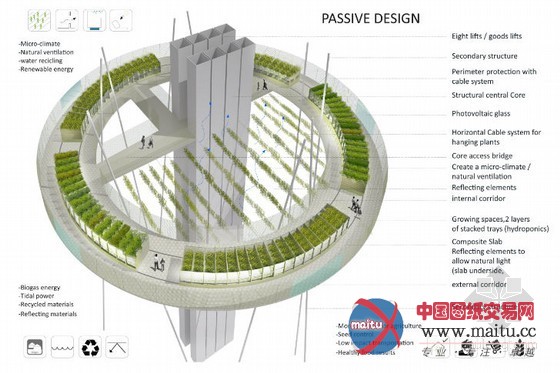 中国需要赡养世界1/5的人丁,然后可莳植的地盘却日趋削减。垂直农场成为解决眉燃之急的有效方案,西班牙JAPA建筑公司提出了动态垂直收集(Dyv-Net)布局,该建筑可置于市中间周围。以轻金属为骨架,Dyv-Net农场可以出产四时作物,接近本地市场,撑持本地经济。该设计今日荣获2013将来建筑大年夜奖(FuturArc Prize 2013 Competition)。