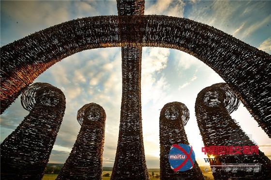 在俄罗斯农村,一座高大年夜的白桦树枝编制的高塔坐落在广袤的空位上,该塔布局扑朔迷离,高大年夜壮不雅,名为“beaubourg”(译为“波”),是***艺术家 Nikolay Polissky比来的作品,他的作品首要包含大年夜地艺术,建筑和步进雕塑。22米高的塔上,树枝纠缠交叉,精心编织,仿佛一座巨大年夜的编织篮子。Polissky连络***传统枝条编织工艺,操纵金属布局作为内部骨架,建造而成。内部的扭转楼梯,可供游人登上顶端的平台,来赏识周围的风光和村庄。以巴黎最古老的地区定名,“beaubourg”一词是是polissky旅法以后的灵感。他遭到了闻名的 Pompidou中间的影响,由内而外的外形和轮廓,都援引了解剖学上管状布局的影响。
