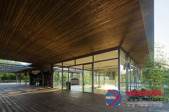 房子与外界的能量互换,部门地采取了可延续设计办法,削减能源耗损。勾当的水面穿过建筑的架空层流进水池,调度微气候,站在露天的户外木地板大年夜平台上仰看星空的不雅者,可以感触感染到木板裂痕透上来的地气,玻璃滑动门拉开后,还可以在室表里和廊道之间自由地穿越,健忘了空间与时候的边界,仿佛回到了童年游戏的时辰。对在中国南边乡间长大年夜的孩子来讲,在大年夜大年夜的屋檐底下,流连在廊、院等灰空间当中逗留游戏的体验,是夸姣而值得回想的,不知不觉地,乡间的汗青,就象诗歌一般,渐渐地模糊闪现。
