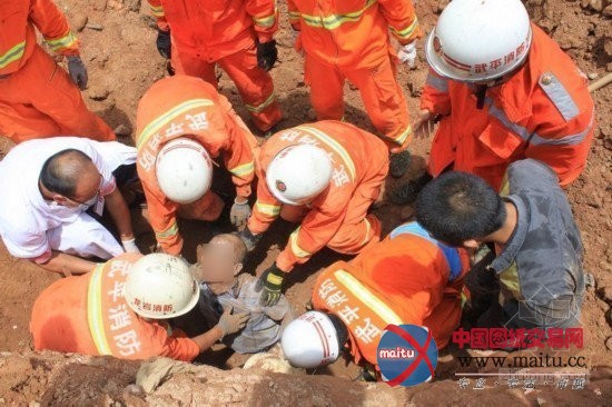 午时12时许,救济人员将刘永保周围的大年夜部门泥土清理出来。此时,大年夜家发现,刘永保身体的左边下方是他的老婆。此时,这对夫妻脸部朝下紧靠在一路,丈夫的左手仍搂着老婆的腰部,用本身的上半身给老婆搭出一点空间。遗憾的是,当救济人员将刘永保救出时,他已全身发青,口鼻塞满泥土。经医务人员查抄确认,刘永保已无生命迹象。救出刘永保后,救济人员再次加快速度,清理被埋女子身上的石块和泥土,随后谨慎翼翼地将其抬到救护车上。在丈夫和一顶草帽的呵护下,她保住了命。图为被埋女子。