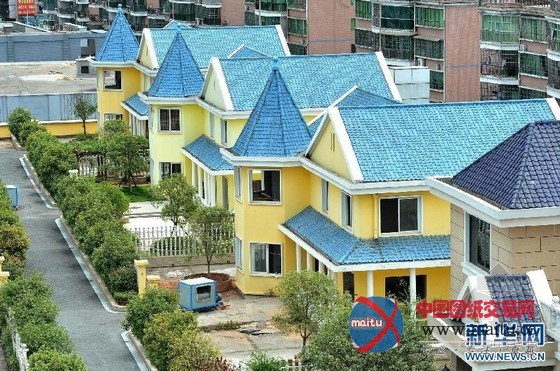这是湖南省衡阳市石鼓区一家居广场楼顶整洁摆列的别墅。