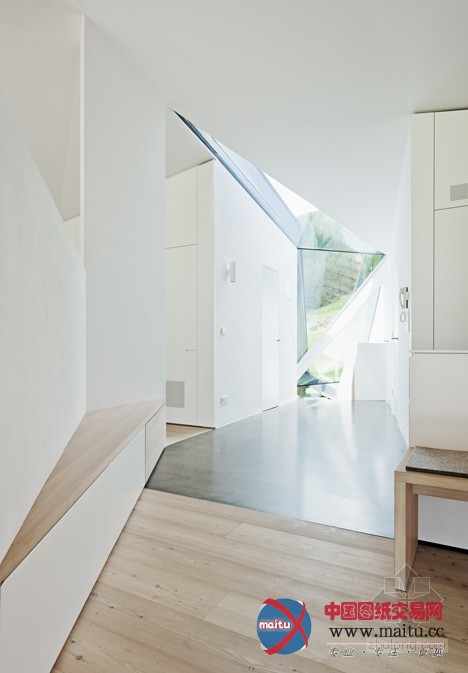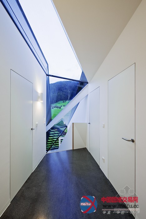 两个程度面向里延长,它操纵一种倾斜的地势以此使低点的楼层,半隐半现的处于高层之下,操纵这类扇面布局,可以或许同时看到统一程度面上的风景。在里面,卧室面对到走廊,上头还有一个玻璃的鸿沟并向建筑外延长。一个开放式的起居,厨房和餐厅被安设在上层,用一个微角度来使得它的位置与下面的布局辨别隔来。这个层面上的大年夜阳台,可使不雅者看向丛林笼盖的丘陵和山谷另外一边的白雪笼盖的山岳。