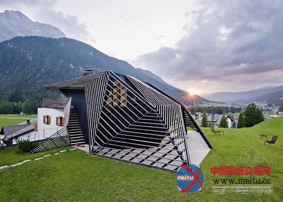 等离子工作室面对着一个两重担务,添加轮回空间和一个新的家庭到现有的一个接近奥地利边疆的赛斯托南部的蒂罗尔村落上。建筑师暗示:“一个操纵率最低的屋顶空间,让位给一个连接到一楼欢迎室和建筑主人办公室的支柱”。参数化软件成立了一个角的外形,在上面可以进行折叠,并且可以或许还原成本来的立方体的情势,笼盖着近似工作室设计的层次旅店的细条状的落叶松木材。这个布局好似蜿蜒的山体布局,在建筑物的后背砥砺着连续串的平面飞机。