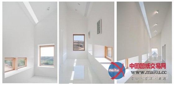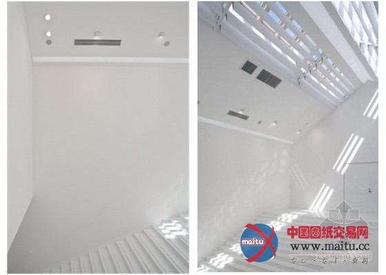 行走在一楼走廊,从顶部进射的光线打在走廊北侧的墙面上,仿佛行走在岁月的空间,让人不由生出些许的畏敬,脚步不由放慢了良多,表情也安静了良多。设计师经由过程这类设计让参不雅者多了些思虑和安静,同时也为下步的参不雅酝酿了基和谐预备。二楼右拐经由过程一个开放性的连廊指导到楼梯上部的私密性的办公区和静思室。