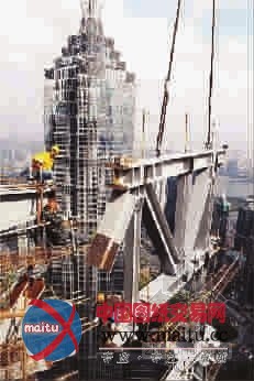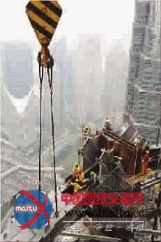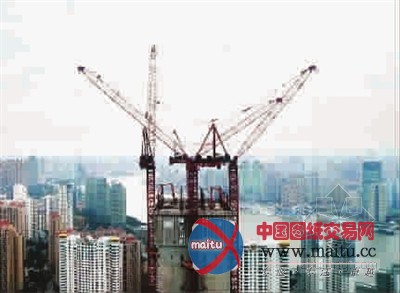 国内初次采取四台巨型动臂塔式起重机集顶用于上海中间大年夜厦钢布局施工