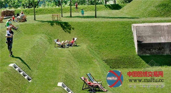 设计的灵感来历于这个碉堡悠长的汗青,新的改建也避免了过度汗青化。该设计可以被理解为一个巨大年夜的草丛雕塑,整合了新旧元素,例如掩体、防弹建筑和圆形剧场。该项目堆积了本地的几项勾当,同时它同样成了新型公有地盘设计的典范,即作为公共勾当场合的同时同样成了本地最具有吸引力的景点之一。
