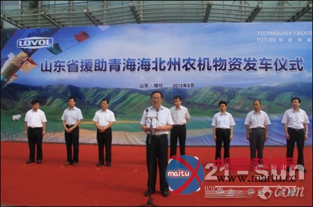 8月12日,山东省支援青海地区农机物质发车典礼在福田雷沃重工进行