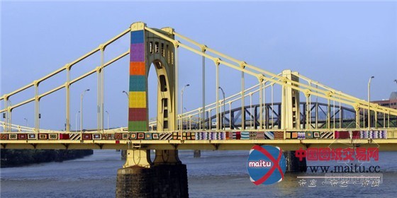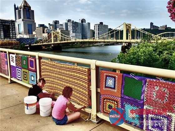 匹兹堡的安迪沃霍尔大年夜桥,近日穿上了色采残暴的花线衣。这是由1800名自愿者一同出手,编织地数以百计的手工钩花、编花毛毯。这些花毛毯布满活力、色采明快、图案活跃,笼盖整座大年夜桥外概况。桥塔部门和主缆则由本地驰名艺术家们负责绘制各类光鲜色采的图案。人行通道的悬空部门则需要出格聘请专业工人来把持。