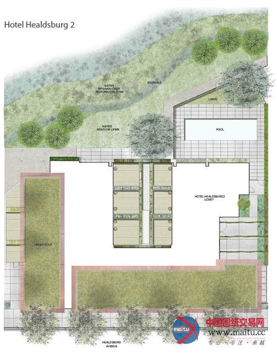 该酒店位于加州希尔兹堡,荣获LEED金奖,是一座内含36间客房的精品酒店。该酒店奇特的地方布满设计、运营、生态意识(包含节能编制、绿顶。太阳能板等)各个方面。该酒店的前身是一座加油站,身处小镇中间要地,是福斯河岸首要的风景之一。该酒店尽可能的保持了原生景不雅,并答复河岸原有生态。