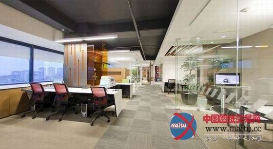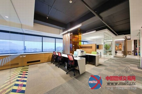 色采拼接方块装潢的伊斯坦布尔办公室,空间布满活力。透明的玻璃隔断距离扩大年夜了的视野,全部空间显得加倍的敞亮,并且布满活力,小办公室内则选用了木质办公桌和带有设计感的座椅,显得质感成熟,用不合气焰的设计来划分员工的等第,也是一个奇妙的编制。