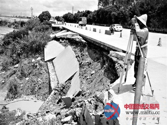 【启事】 暴雨导致路基下沉