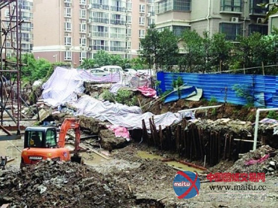 南京一小区违规建地下车库坍塌现大坑