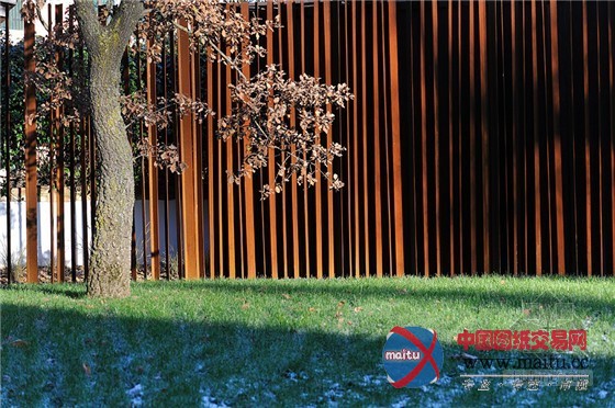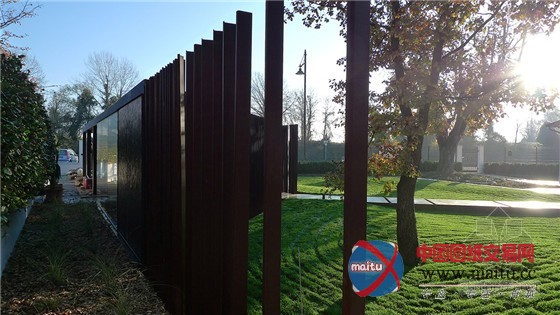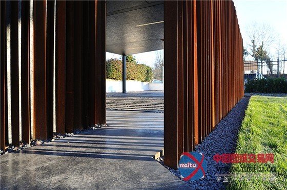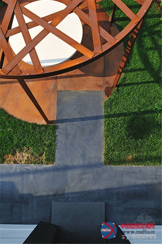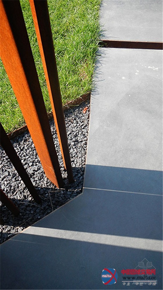 花圃中的车库和蕴躲室彼此分手,经由过程一系列的插进地下的,不合的角度的刀片状的金属装潢分隔。叶片在风大年夜得时辰,可以略微地垂直活动。