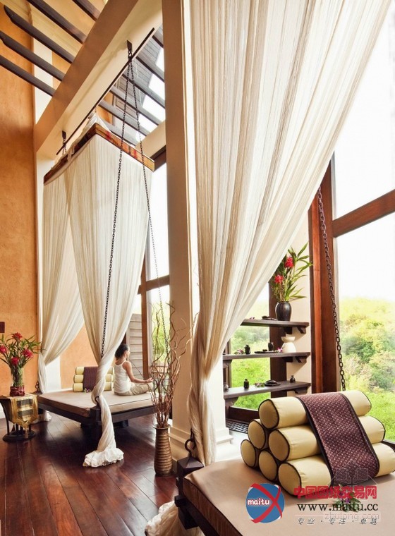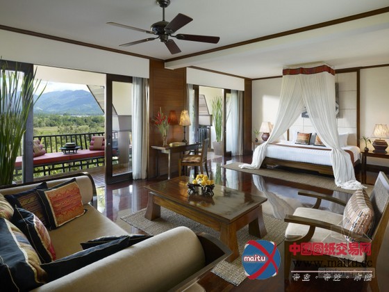 三国景不雅豪华客房的宽阔阳台可以远看缅甸、老挝和泰国山间升起的层层薄雾。富有光泽的柚木地板和富丽的泰国丝绸无不披发着品位,热和的棕色色调则与室外的昂然绿意构成光鲜对比。环绕在这天然美景当中,室内还配有现代化的豪华举措措施,如纯平卫星电视、带羽绒被的特大年夜双人床、超大年夜水磨石混堂等等,为客人带来无上享受。都丽堂皇的安纳塔拉套房由一间卧室和宽阔的起居室构成,还有一个20平方米的阳台,客人可以靠在松软的沙发床靠垫,呼吸山间的清爽空气。从起居室到卧室,精彩的泰式艺术品、柚木雕镂、硬木地板和休闲家具尽显舒畅。