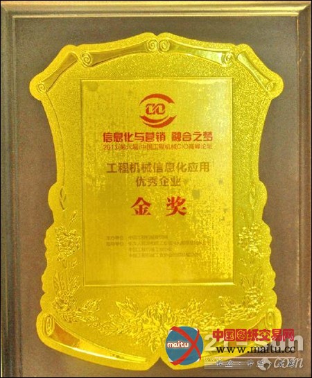 2013年第六届中国工程机械CIO岑岭论坛于8月29日在青岛召开,我司荣获“2013年工程机械信息化利用优良企业”名誉称号。
