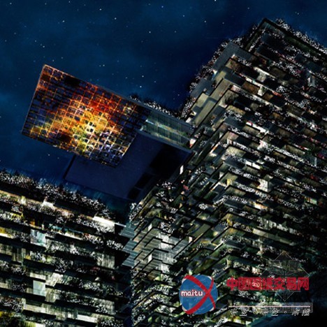 在最高的楼上面还有设置一个悬臂层,看上往就像是一栋楼突然伸出来的平台一样,这个平台容纳了38个豪华公寓,而平台的下面是镜面的,可以经由过程阳光直射捕获到下面花圃的景象形象。当夜幕降临,这个悬臂平台则经由过程LED照明灯的改变来演绎画一般的斑斓。中间公园将于2014年1月落成,公家在六月份可以参不雅该项目。