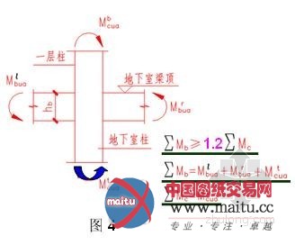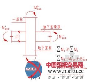 5)当框架柱嵌固在地下室顶板时,位于地下室顶板的梁柱节点应按“强梁弱柱”设计,即首层柱的下端为“弱柱”,地动时屈就、出塑性铰,为实现首层柱根先屈就的概念设计,位于地下室顶板的梁柱节点摆布梁端截面统一标的目标实配抗震受弯承载力∑Mbua与地下室柱上端统一标的目标实配的抗震受弯承载力Mcua之和,需大年夜于首层柱下端实配抗震受弯承载力Mcua;凡是,可按1.2倍的要求节制。