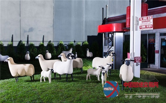 这是由michael shvo和 paul kasmin设计的美国纽约旧加油站改革的绵羊牧场雕像。名为“羊台”,于2013年9月17日向不雅众开放。该超实际寄望的景不雅设计,将几十头羊的雕塑,固定在曾的加油站中,保留了部门加油站的元素,例如加油泵和灭火器。fran?ois-xavier lalanne 同25名当代法国艺术家一同建造了这些青铜和环氧石外壳的羊群雕塑,并安设在加油站的草坪中吃草。该作品被放置在艺术区中间,作为一个姑且的艺术空间,扭转揭示。