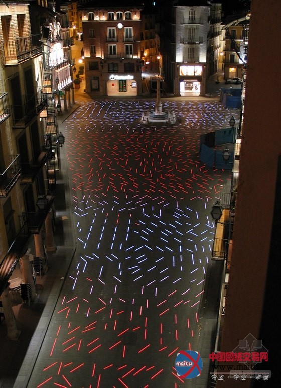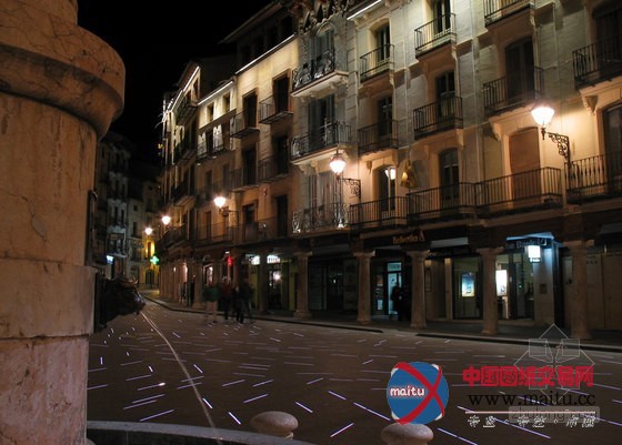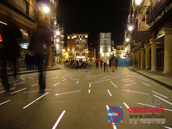 操纵地面的灯光,揭示进步空间建设的角度、标的目标和线性感知,加强沿地面程度差别。经由过程软件的把持,地表的LED灯光可以揭示不合的图案改变,成为广场上动态照明系统。其灯管的走向摹拟水流,而在拐点上,正好坐落着Torico喷泉。