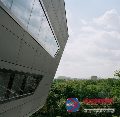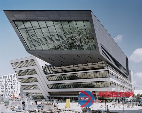 维也纳经贸大年夜学新校区能同时容纳24000论理学生和1800名教人员工,这座藏书楼也是该校的新进修中间,是该校新校区的第七座楼。在这些楼当中,扎哈•哈迪德的这座占地2.8万平方米的建筑是最为显眼、最有活力的。它具有一个半封锁的悬臂公共广场,通体呈黑色。如许的布局在藏书楼中是少见的,可是颠末建筑师独具匠心肠设计,将内部空间升高了、扩大年夜了,外部被玻璃纤维钢筋混凝土板笼盖着,在室内更不会显示阴晦。比拟之下,底部的白色墙壁使全部建筑显得很稳妥,内有教室、会堂、工作区和办公室。建筑的整体呈35度倾角,增加的建筑物顶部的面积,同时节流了地面面积。扎哈•哈迪德建筑师事务地点2008年时,凭着如许富有活力的外部设计获得了该建筑的总设计权。同时,扎哈•哈迪德建筑师事务所也为喷鼻港大年夜学和阿塞拜疆等黉舍设计了校内建筑。