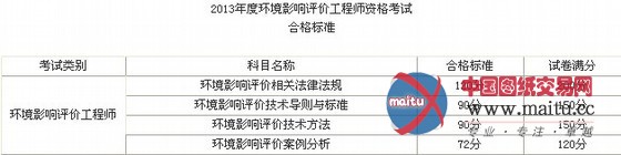 1.2013年度环境影响评价工程师资格测验合格尺度