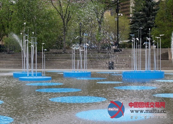 这是由 NORTH DESIGN OFFICE设计的加拿大年夜卡尔加里大年夜天空喷泉。设计师在奥林匹克广场中间喷泉中,安设了不合大年夜小和深浅的蓝色圆盘,摹拟天空中的云彩,创作发现出这座名为大年夜天空的水景。