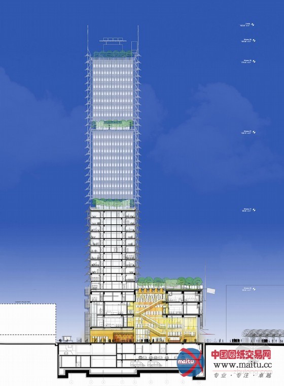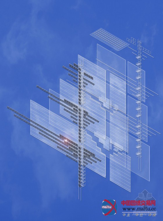 此中包含城市北部边缘的公共和私营项目。它的建成在物理大将该城市的各部门与城市的心脏部门连接起来,经由过程一个由有轨电车的公共交通系统相连。在建筑的周身,遍及利用了大年夜开窗的设计,在大年夜厦的正面是两个玻璃的全景电梯,在此中可以饱览该城市的各个处所,大年夜厦其实不是出格厚重,相反,它经由过程对阳光角度的切确计较,使得阳光可以或许准确地照进建筑内的各房间中。大年夜厦的整体是一个多层次的建筑,由四个叠加的部门构成,建筑师采取了玻璃底座,以凸起建筑主体的透明性和合用性。在建筑物的顶层设计有一个画廊,阳光可以从顶层的天窗中照进此中。四组建筑每组有十层,跟着它们的升高,每组都比下边一组小一些,由此产生的露台可以莳植顶层花圃,为建筑带来绿色生气。同时还安装了大年夜面积的太阳能电池板和雨水汇集系统用来弥补建筑内部的能源供给。