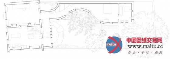 该项目是由19世纪30年代的的两间小屋归并组合成的,中间用一个曲折的木制弧线布局的建筑连接起来。这个曲折的弧线布局的空挡处莳植了一棵黄栌树,并且天然延长出一个下沉花圃。房子的前方还有一个斜坡走廊,如许一小我性化的设计,可以便利这个家庭的老母亲用轮椅自如地进出房间。不但如斯,这个走廊延长到户外的花圃,把客堂空间延长到花圃外面。房子里面有卧室、浴室。在材料选择上,建筑都采取的是原生木,并在如许的木材外面涂上一层白色油漆。