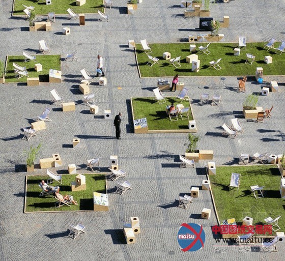 该项目还鼓动鼓励自愿者操纵小型木块模型,来组装舒适的空间。孩子们也被聘请来一同创作发现本身心目中抱负的空间设置。成年人则利用立体的方桌,椅子来划分空间。姑且性安装草坪打破了本来巨大年夜的空阔的广场,人们是以在这处令人轻松兴奋的绿色空间中堆积。