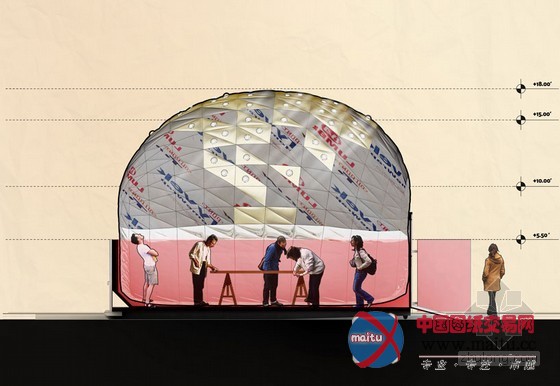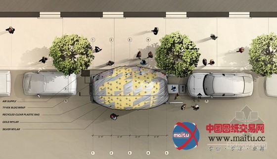 设计师将利用一种同化轻质材料,成立一个一应俱全的移动软体“垃圾箱”,并在内部设计一个可栖身的布局。这类材料首要的构成部门是便宜的聚乙烯,一种常见的可生物降解的塑料,设计师在这个材料周边镶上金色和银色的拉边,并且经由过程材料的设计和垃圾箱上的小孔,让内部的人可以看见外部的环境,并且包管光源。全部物体长23英尺,宽8英尺。