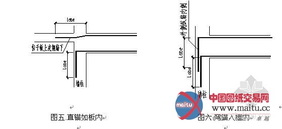 钢筋伸至墙外侧纵筋内向下弯锚,如图六。锚固长度从弯折点下缘计不小于lab。寄望,此方案其实不是不是定程度段锚固的首要性,恰是因为程度锚固长度不敷,而干脆不考虑其锚固感化。