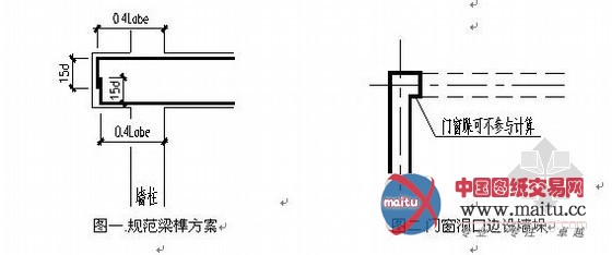 规范JGJ3-2010第7.1.6条提出了梁榫的锚固方案,如图一,可解决布局机关上的标题问题,但在建筑功能上有限制,若梁榫端方好是填充墙,则皆大年夜欢乐,不然,建筑空间可不肯有构件突兀出来一个瑕疵。这就要求建筑、布局专业共同的完美无缺,出格在室第建筑中,如在墙端门窗洞边留出混凝土墙垛,知足程度锚固要求。如图二。当然,这类机关小墙垛对布局整体刚度影响甚小,可不介入布局计较,仅作机关措置办法罢了。但这仅能解决部门标题问题,若梁墙节点处不在门窗边,这类措置仍是建筑所不克不及接管的,下面提出一些措置方案。