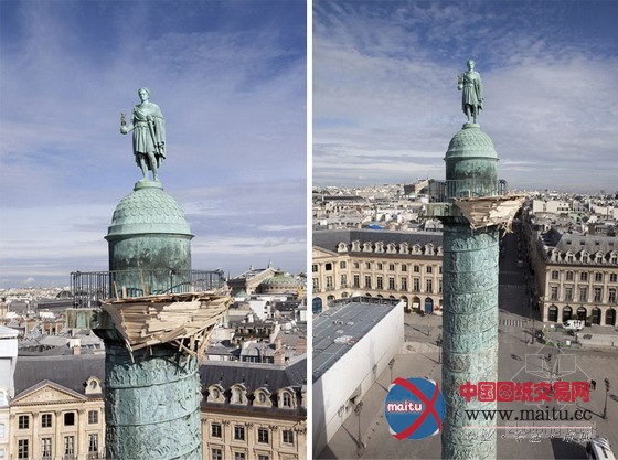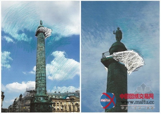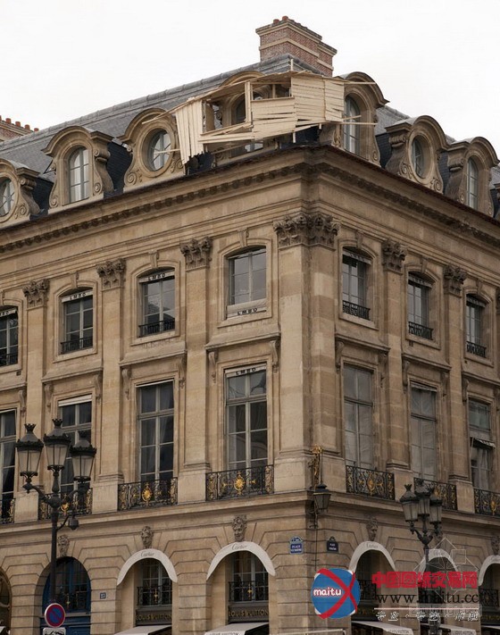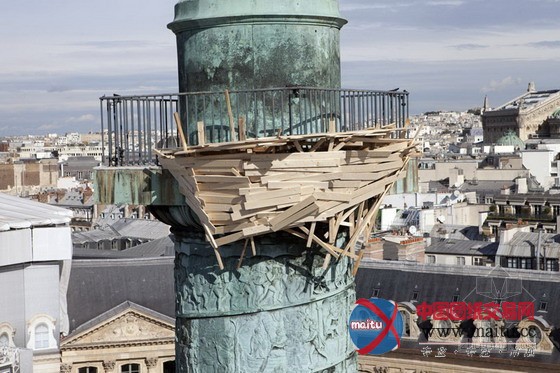 这是由tadashi kawamata设计的法国巴黎vendome广场空中小板屋。日本艺术家tadashi kawamata在广场上设置了一系列寄生木质布局。最光鲜的“小树屋”建于vendome广场中间立柱和相邻的大年夜厦上,在古迹上,操纵木板,搭建了姑且的、犹如燕窝一般的编织框架布局。别的一处是4个小小的板屋,环绕在一座19世纪的建筑物外壁上,位于广场外围。操纵新型支柱,悬浮于空中。这是FIAC(国际当代艺术博览会) 2013的一部门展出作品,将接见会面向公家一个月。