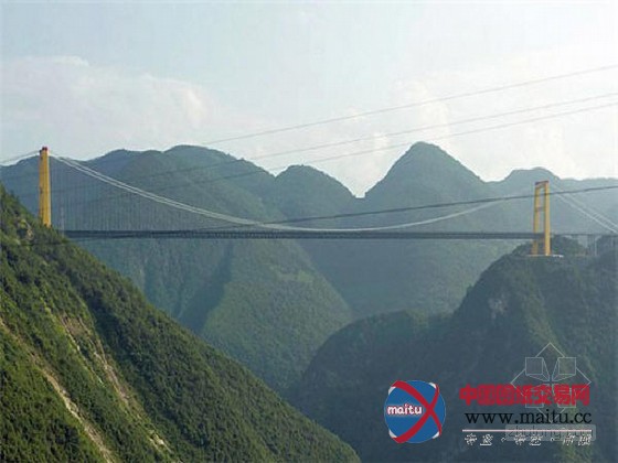 1500多英尺高的四渡河特大年夜桥是世界上最高的桥。长约4000多英尺,连接了上海和成都,是今朝中国在深山峡谷里建筑的最大年夜跨度悬索桥。