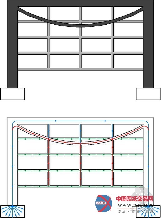 通俗布局一般都是如许的。就像巴尔蒙德教员所说的,每层的程度荷载就像水池,横梁就像沟渠,将这些水导向柱子。全部竖向系统可以类比成一条大年夜河,每个楼层处汇进一条支流,越往下流,水流越大年夜,最终汇进大年夜海。一样,柱子在每个楼层处都增加一个楼层的荷载,越往下,柱子承担的重力荷载越大年夜,最终,柱子将这些荷载导进大年夜地。