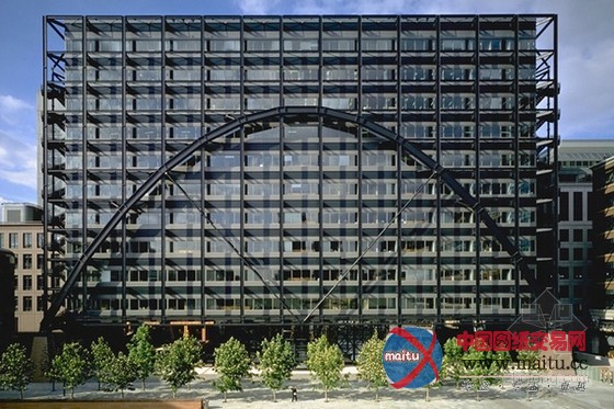 一样的例子还有位于伦敦的 Exchange House,Bill Baker 教员的作品。只不外跟上面的例子刚好相反,这个是用受压的拱代替了受拉的悬索。全部建筑物的重力荷载由四道拱圈承载,底层中间一样没有柱子和墙体。