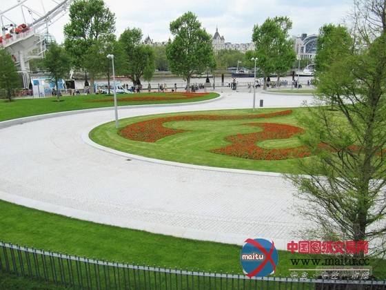 这是由 WEST 8设计的英国伦敦钻禧记念公园。该公园为庆贺女王即位六十周年庆典,从2005年就开端设计,2012年5月31日正式开园。同时也是预备作为2012伦敦奥林匹克活动的公共场合。这是一个首要的公共场合,壮不雅的绿色公共空间是沿着泰晤士河南岸上的核心,位于庆典厅和市政厅之间,邻接伦敦眼。