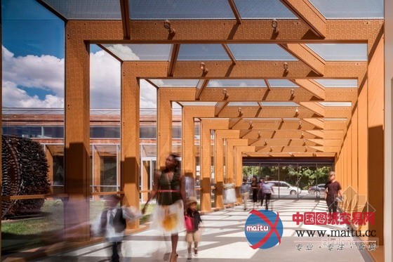 景不雅在该项目中据有主导地位,这是汗青建筑和新建筑的过度,经由过程农田式景不雅连接过往与此刻,当下与将来。尊敬汗青,呵护老房子,推出透明的木架走廊,沿用古老印第安汗青遗址。建筑物外的屋檐伸出,中空的玻璃窗、石板和程度扭转的布局用来挡雨。呼应汗青遗址。