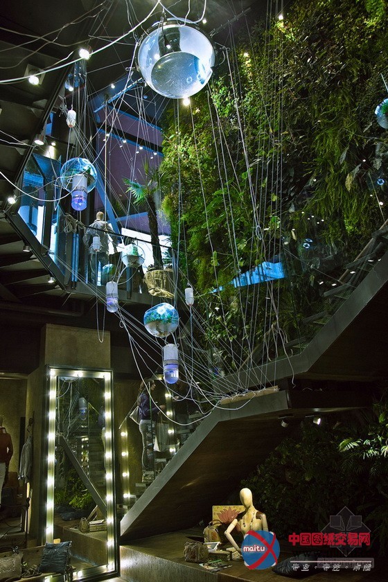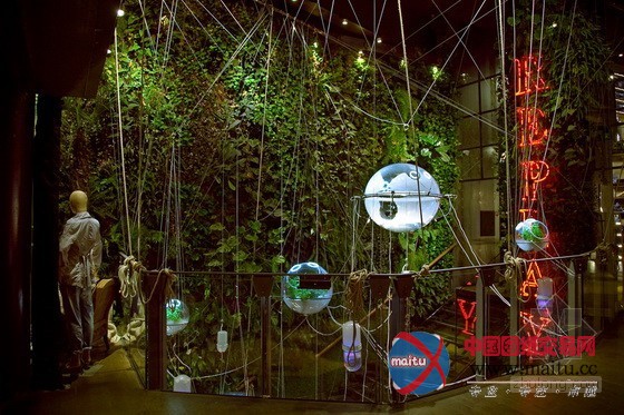 这是由STUDIOMOBILE设计的意大年夜利米兰Hydro-Cobweb水电球蛛网。这个项目由良多悬浮在空中的玻璃球和交叉的收集构成,每个球中有水、植物和照明,这些举措措施以绿色的植物墙为布景,就像一个有生命的有机体。该举措措施摹拟天然的水轮回过程——海水蒸腾,遇冷凝集,转为淡水。这些水球内的植物采取无土栽培手艺,颠末措置的矿化水被输进每个有机玻璃球中。设计师的设法是采取可以节制的编制进行大年夜型的垂直绿化,并让该装配构成天然的轮回过程。