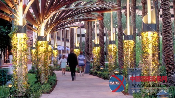 这是由 SWA设计的美国亚利桑那州凤凰城亚利桑那中间。该项目是一个公共私有同化利用的凤凰城中间区。在城市中间,以往只有一些汗青性的建筑物,没有海滨和主街道的购物传统,该项目成为一个全新的都会中间:住在城中间的人们鄙人班后可以落拓的在花圃中勾当,城郊的旅客也能够在周末带着孩子们玩耍,同时这里还有一座高尔夫球场。操纵800棵椰枣树,将该中间前被划分成8块区域。