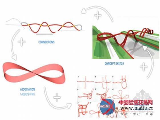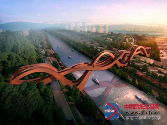 Next建筑事务所为湖南长沙龙王港设计的一座表现传统文化的中国结桥梁,这座如缎带般美好柔和的人行桥,仿佛舞者的水袖擦过江面。 该桥身长150米、高24米,其奇特的莫比乌斯带(中国结)造型在为刚毅的桥梁注进美好气质的同时,也加大年夜了和江边及周围山体共同的施工难度。