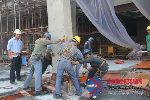 早上八点三十分,在项目经理钟红春、常务项目经理郭建辉的批示下,重20多吨的转换大年夜梁在M900D塔吊的牵引下,徐徐升上、平移、调剂、定位、下放,大年夜梁准确安装就位,工人及时施焊,颠末两个小时的尽力,首根转换大年夜梁顺利完成安装。