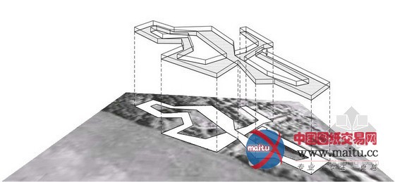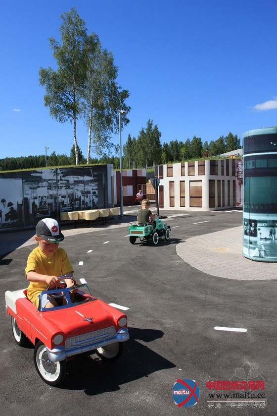 该露天博物馆展览区的设计基于一条道路——当游人在这里安步的时辰,他们沿着行进的线路,将会顺次穿过完全不合的景不雅区域。该博物馆设计了一条8字形的狭长路径,当人们在此中穿梭时,这些具有不合性质的功能区连缀不尽,游人们犹如在翻阅一部连环漫画。在场地中,一座19世纪的钢铁大年夜桥从本来的位置迁徙到此处,继而被付与了新的功能——连接博物馆内的两个展馆的进口。
