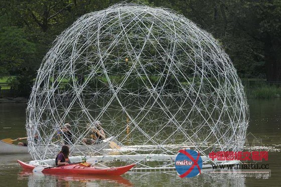 由Amanda Schachter 和 Alexander Levi设计的美国纽约河上的蒲公英2.0版(Harvest Dome 2.0)。近日,该作品方才荣获Big Ass Fans援助的Dwell视觉大年夜奖。这座奇奥艺术品由450个伞架和128个2升的塑料瓶子建造而成,犹如一朵晶莹剔透的蒲公英,轻轻的浮在纽约河上。一年半前,设计师们曾建造过这个项目标1.0版,可是不幸在Riker岛撞毁。