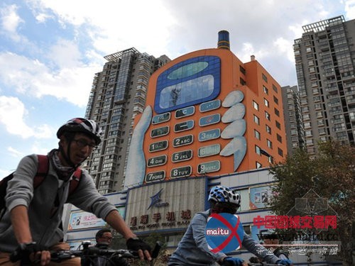 在环城东路上,一栋11层高大年夜楼的后期装修装潢,成为一只手机的造型,按键是窗户,屏幕就是顶层的大年夜厅玻璃窗,一只手握着手机,别有趣味。这栋楼是星耀手机城,“往‘大年夜手机’里看看手机。”这是时尚数码一族的口头禅了。