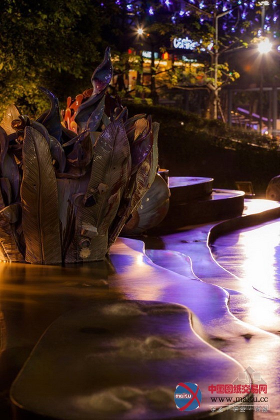 Shma的设计师与闻名遐迩确本地大年夜地艺术家Somluk Pantiboon合作,在跌水景不雅中设计了5座漂浮的雕塑,这一个系列的雕塑成了广场的主景,同时也意味着木棉花从萌芽、绽放到干涸的全部生命周期。