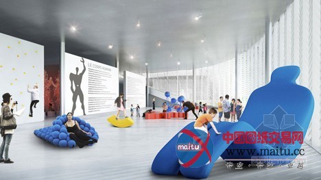 该博物馆经由过程进行文化勾当,互动式的展览,和丰硕的表演,从科学家、社会学家和艺术家的角度诠释出人体艺术。7800平方米的建筑将在一个程度上被分为八个的环环相扣的空间,。屋顶以不合的坡度接到地面上,使得参不雅者可以随便上下,在最高处可俯瞰公园和周边城市的美景。那些坡出了一个标的目标以外的处所的概况都展有草皮,所以从外看都是从一个标的目标连接到地面的。城市路面和公园的草坪,就像两个不兼容的物质——油和醋,但此刻却彼此拥抱在一路,构成一个斑斓的景不雅。看似单个的展览馆被放置在一路,构成一个统一的机构,就犹如不合的手指连合在一路,彼此紧握。首要的欢迎大年夜厅将设在建筑的正中间,他将和良多带有展馆的通道连接在一路。通道内还将另设有五个进口。曲线形的外壁上安有通气窗。按照太阳角度的改变,沿着建筑物的长度不竭改变他们的标的目标,以保持最好的光线射进展馆中。工程估计在2016年开端,在2018年完成。